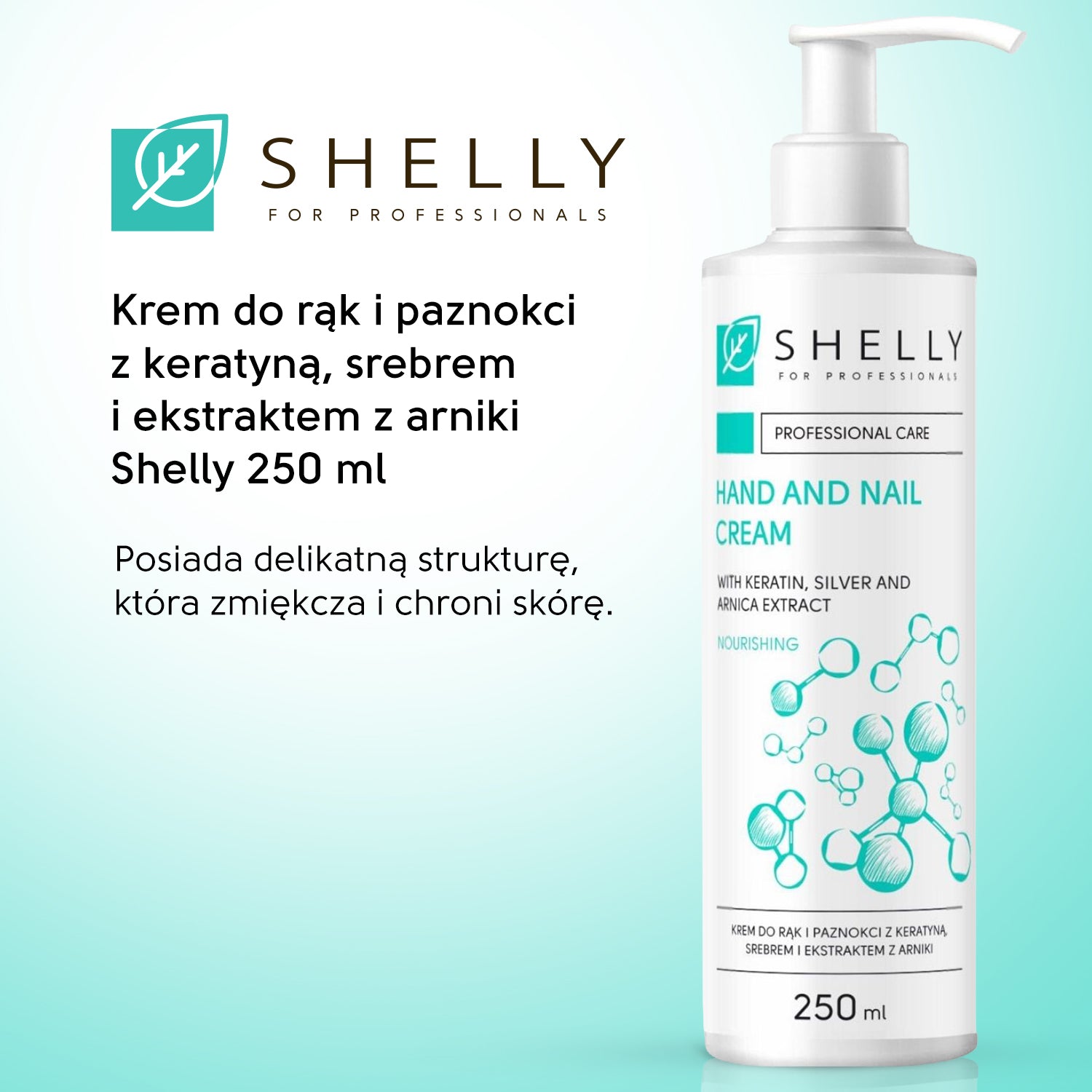 Shelly Hand & Nail Cream z ekstraktem z keratyny, srebra i arniki zapewnia 24-godzinne nawilżenie i odżywienie dłoni, paznokci i skórek. Delikatna formuła, wzbogacona o silną mieszankę składników aktywnych, gwarantuje długotrwałą pielęgnację i ochronę.