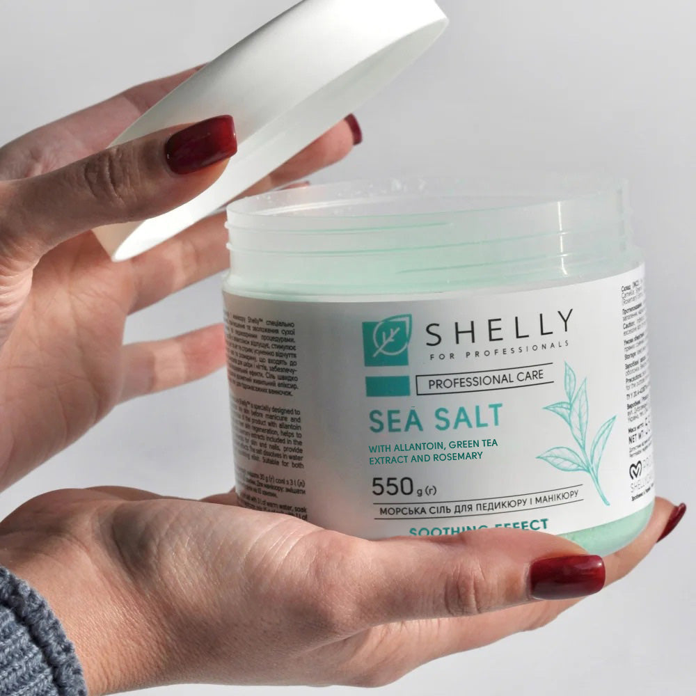 Shelly Bath Salt with allantoin, green tea, and rosemary softens the skin, reduces inflammation, and strengthens nails, making it ideal for manicure and pedicure routines. Perfect for home or professional use, it provides a rejuvenating and relaxing experience.